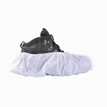 Soft polypropylene nonwoven overshoes with elasticated edges. More durable and tensile.